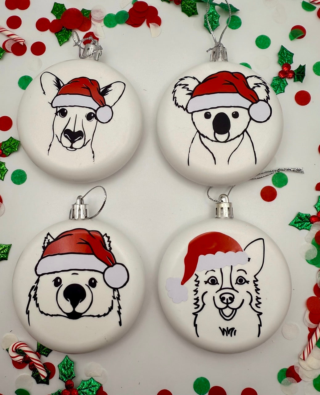 Celebrate Christmas with a true Aussie twist! Our Aussie Christmas Series pays homage to Australia’s most loved animals, featuring 7 gorgeous designs of your favourite friends — each wearing a festive Santa hat for that perfect holiday cheer.